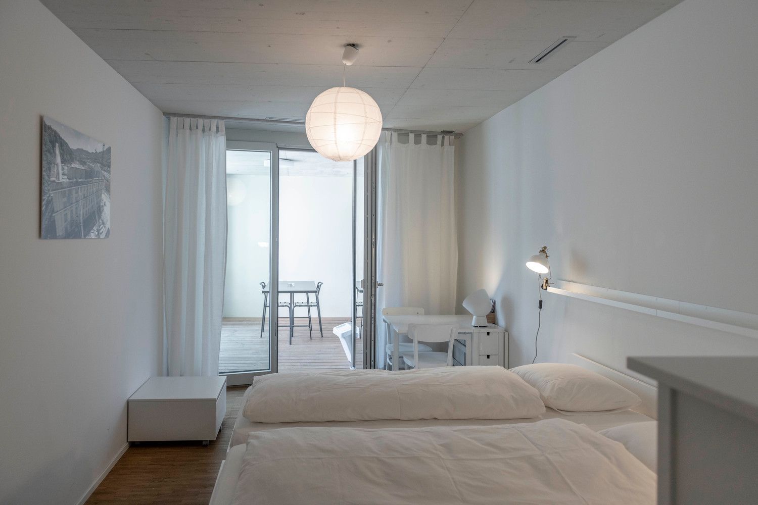 The four guest rooms in the Manegg district are located in an apartment building owned by the WOGENO cooperative. One of the fundamental ideas behind WOGENO is self-management of a building by its community of residents and the organisation of these residents within a ‘Hausverein’ (cooperative association for governance of the apartment building). Within the Hausverein, there are various working groups that organise different aspects of life within this community.